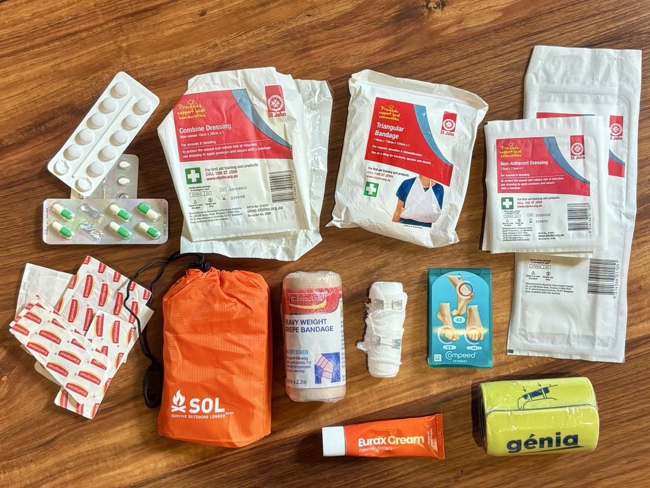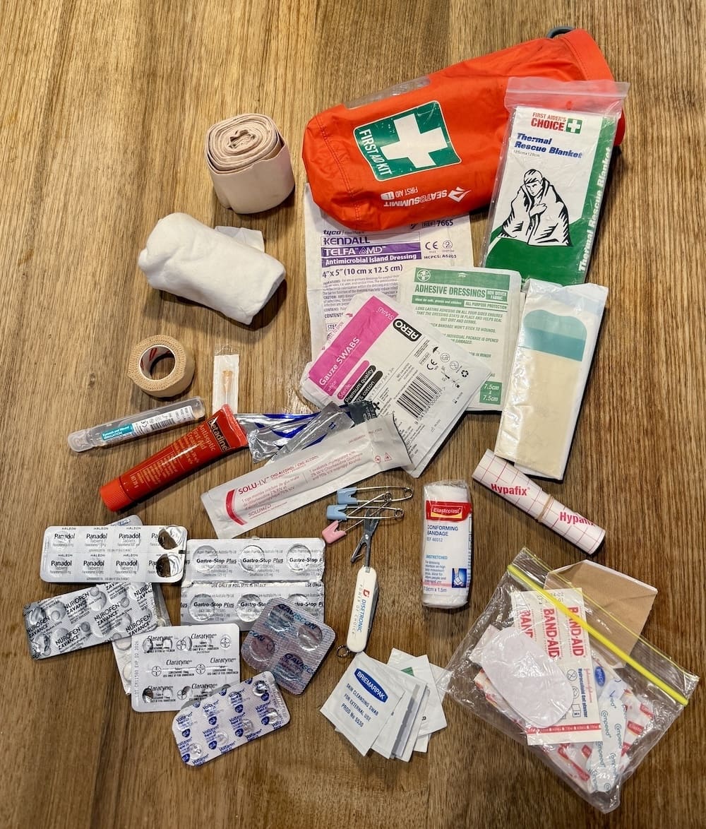 - In the photo you can see that I did not include medications like analgesics or antihistamines. They live in a separate medications pouch..I used to carry all sorts of prescription only medications like phenergan and synthetic opiods. But ditched them when they went out of date and never replaced them. Ditto for sutures. I take steristrips instead .