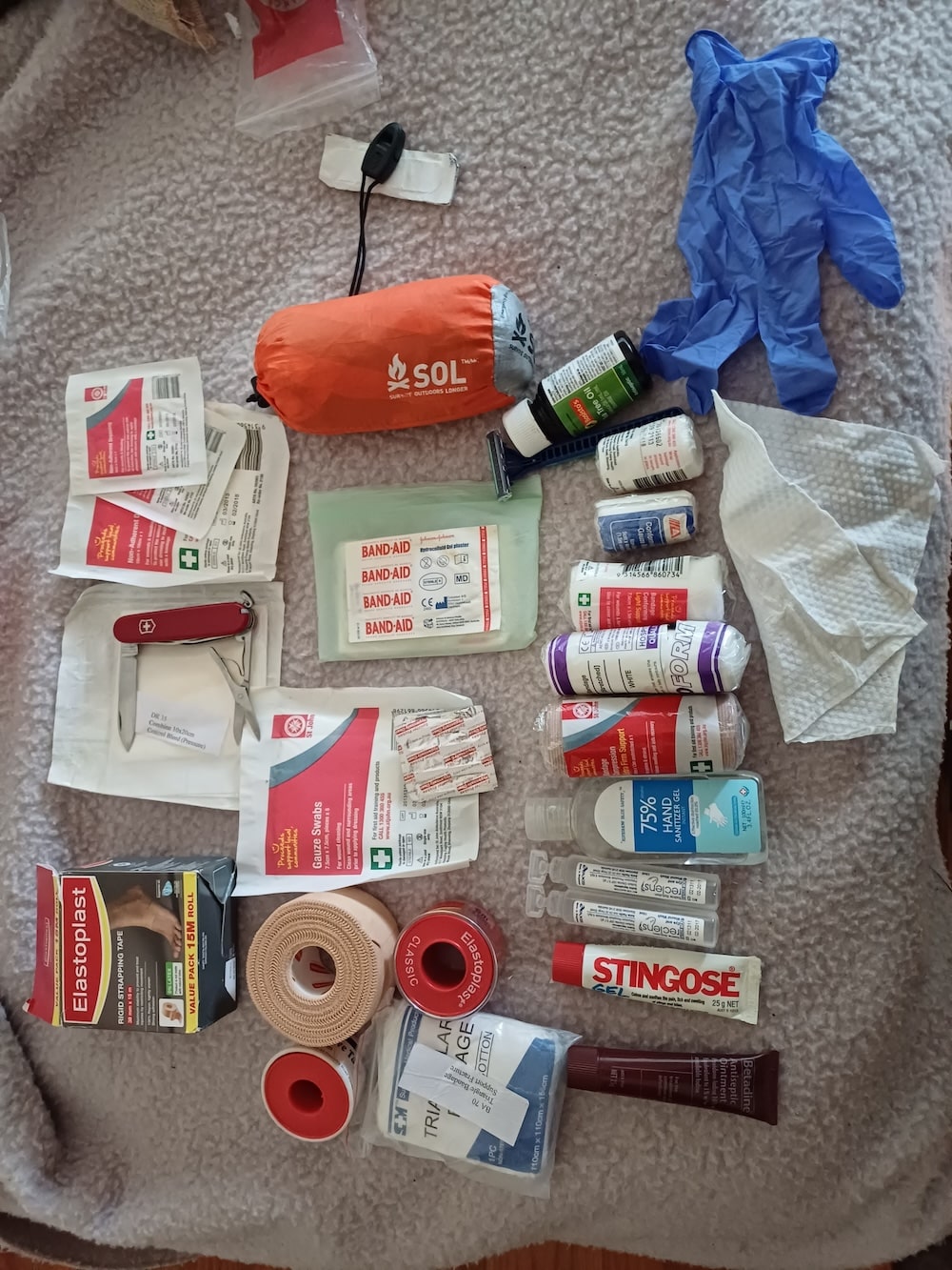 My first aid kit does vary ,depending on the walk and what I have at home and what ailments I suffer from.