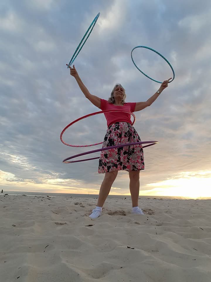 She made hula hoops with fancy lights inside, had her own hula hoop business teaching children, & performed at venues.