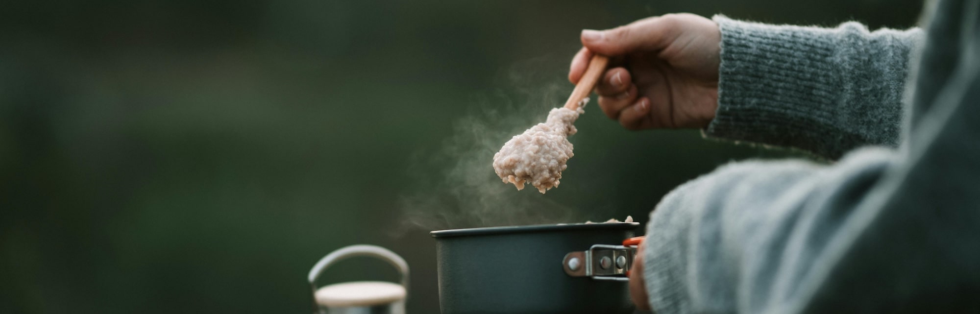 In camp, put the cereal mix in a cup or bowl and add twice as much boiling water (add extra if you have added fruit.) Stir well, cover, let stand 10 minutes while you enjoy something hot to drink or take down your tent. Using rolled oats will give greater texture if you’re prepared to wait a little longer. Add more hot water if the cereal is too thick.