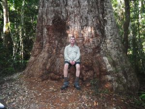 Cooler walking as we started at 8:30am and the trail was well shaded by the rainforest. We had morning tea at Petries camp historical site a few hundred metres off the main trail.A pleasant enough spot but not much there. Although it was walking on sand, the trail was firm and the walking easy, which translated into a fast pace. As we got closer to the Valley of the Giants camp the trees got ever larger, hence the name. We made camp for lunch. No lake at this camp so for part of the afternoon we did a side trip to the Giant Tallowwood, which was indeed a giant of a tree. Because all the camps were in the forest, which filtered out a lot of the sunlight, it started to get quite dull after 4pm. It was all I could do to stop people starting dinner then. Rules had to be enforced, no dinner until 5:30pm. Even then it was all I could so to keep people up after 6:30pm and it wasn’t even cold (people blamed the mossies but I didn’t think they were bad). Colin, Bernie and I generally were the night owls staying up until 8pm!!