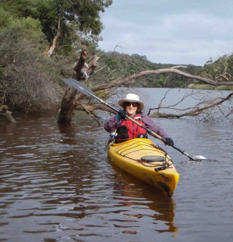 A flotilla of kayaks now assembled and headed downstream. We were paddling the only Canadian – but so much easier to load and get in and out of than kayaks, especially at the landings. There is lush vegetation all along the banks of the Glenelg, and the forest was dripping. The water was like glass, and we were soon past Moleside (reeks of Kenneth Graeme and wind in the Willows) and having morning tea at Wild Dog bend. I spied the same kookaburra in a tree that had taken half a loaf of bread many years before- well, he sure looked the same!!